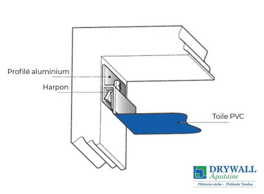 Nous contacterChez Drywall Aquitaine, chaque plafond tendu est réalisé sur mesure, ce qui fait que le prix varie en fonction de plusieurs critères : le type de fixation choisi, la finition, la surface à couvrir, le nombre de spots ou de lustres, ainsi que le nombre d'angles dans la pièce.